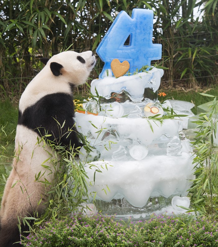 (서울=포커스뉴스) 10일 오전 경기도 용인시 에버랜드에서 판다 러바오(수컷·2012년 7월 28일생)와 아이바오(암컷·2013년 7월 13일생)의 네 번째와 세 번째 생일 잔치가 열렸다. 에버랜드는 오는 28일까지 판다 생일주간으로 지정해 각종 이벤트 행사를 진행한다. <사진제공=에버랜드>