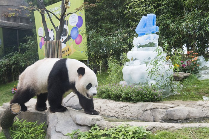 (서울=포커스뉴스) 10일 오전 경기도 용인시 에버랜드에서 판다 러바오(수컷·2012년 7월 28일생)와 아이바오(암컷·2013년 7월 13일생)의 네 번째와 세 번째 생일 잔치가 열렸다. 에버랜드는 오는 28일까지 판다 생일주간으로 지정해 각종 이벤트 행사를 진행한다. <사진제공=에버랜드>