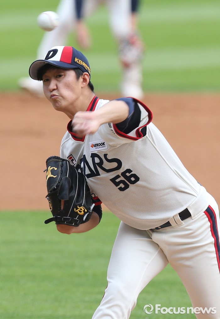 (서울=포커스뉴스) 10일 서울 잠실구장에서 열린 2016 프로야구 KIA-두산 경기에서 1회초 두산 선발투수 허준혁이 투구하고 있다.