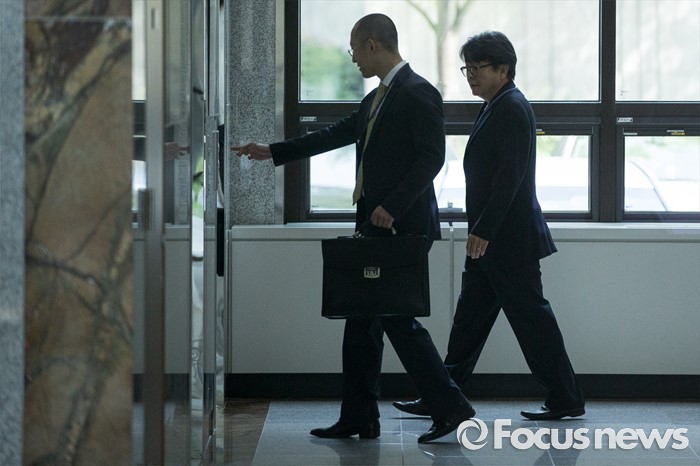 (서울=포커스뉴스) '대우조선 비자금 조성' 의혹을 받고 있는 남상태 전 사장의 최측근 유명 건축가 이창하(오른쪽)가 11일 오전 서울 서초구 서울중앙지방검찰청으로 들어서고 있다.