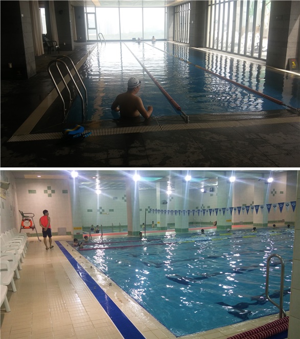 문체부는 안전․위생기준을 위반할 경우 영업정지 처분을 먼저 하고 시정명령이 이행된 경우에만 영업을 재개하도록 하는 등 수영장 이용자의 안전 확보를 최우선으로 할 예정이다. 이번 체시법령 개정은 개정안 마련과 수영장 업계 설명회 등을 거쳐 빠른 시일 내에 시행할 예정이다.수영조 오른쪽 통로 폭 기준 미달 사례(위)와 수영조 주변 통로 확보 사례.<사진제공=문화체육관광부>