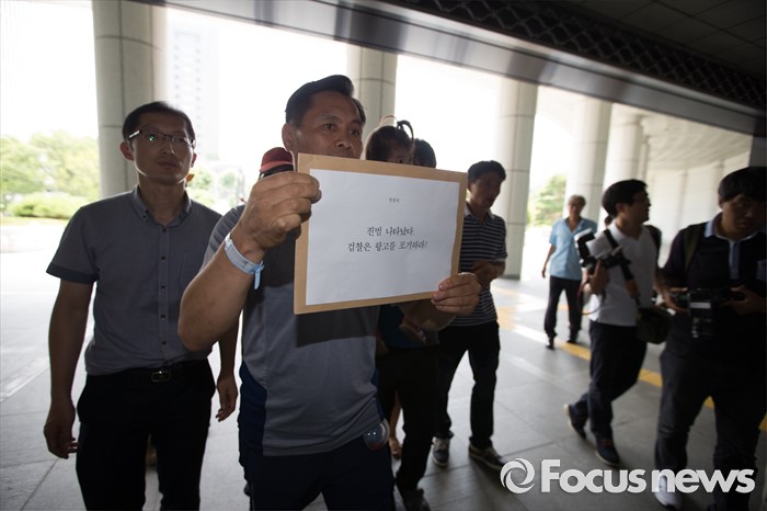(서울=포커스뉴스) 11일 오전 서울 서초구 대검찰청 앞에서 사건의 피해자와 유가족들이 '삼례 나라슈퍼 3인조 강도치사 사건' 진정서 제출 기자회견을 마친 뒤 진정서를 들고 대검으로 향하고 있다.