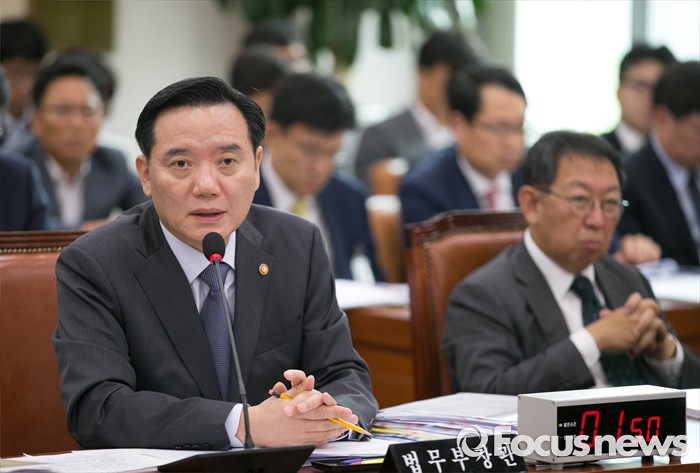 (서울=포커스뉴스) 11일 오전 서울 여의도 국회에서 열린 법제사법위원회 전체회의에 참석한 김현웅 법무부 장관이 의원들의 질의에 답하고 있다. 오른쪽은 이석수 특별감찰관.