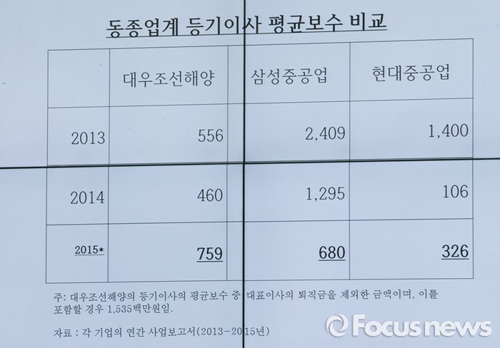 | △ 대우조선해양 등 동종업계 등기이사 평균보수 비교 |