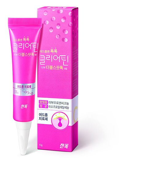 한독 관계자는 “클리어틴 이부 더블스팟톡 크림은 붉은 여드름부터 농포성 여드름까지 염증성 여드름 치료에 효과적이며 피부자극이 적어 하루에 수시로 바를 수 있다”며 “피지분비가 많아지는 여름철, ‘클리어틴 이부 더블스팟톡 크림’을 파우치속에 꼭 챙겨 후회 없는 여드름 치료를 시작해 보길 바란다”고 말했다.한독이 출시한 여드름치료제 ‘클리어틴 이부 더블스팟톡 크림’제품. <사진출처=한독>