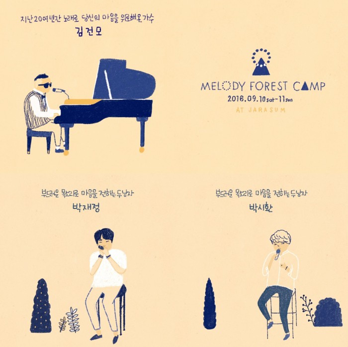 앞서 멜로디 포레스트 캠프에 출연이 확정된 가수로는 악동뮤지션·케이윌·심수봉·신치림(윤종신·조정치·하림)·백아연·백예인·지소울 등이 있다.