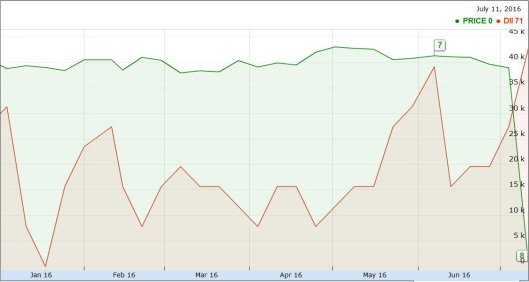 한섬에 대한 투자심리를 의미하는 DII 지수는 71로 투자심리가 긍정적으로 형성돼있음을 보여준다. 50보다 높은 지수로 봤을 때, 투자자들이 바라보는 한섬에 대한 투자심리가 긍정적이라는 뜻이다.
