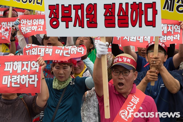 (서울=포커스뉴스) 금강산관광 중단 8년째를 맞아 금강산관광 중단 피해대응 고성군 추진위원회 회원들이 11일 오후 서울 종로구 서울정부청사앞에서 지원대책 마련을 촉구하며 집회를 갖고 있다.