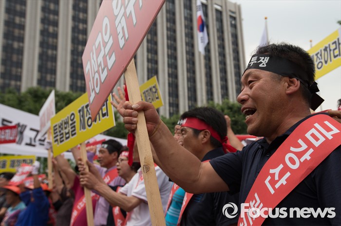 (서울=포커스뉴스) 금강산관광 중단 8년째를 맞아 금강산관광 중단 피해대응 고성군 추진위원회 회원들이 11일 오후 서울 종로구 서울정부청사앞에서 지원대책 마련을 촉구하며 집회를 갖고 있다.