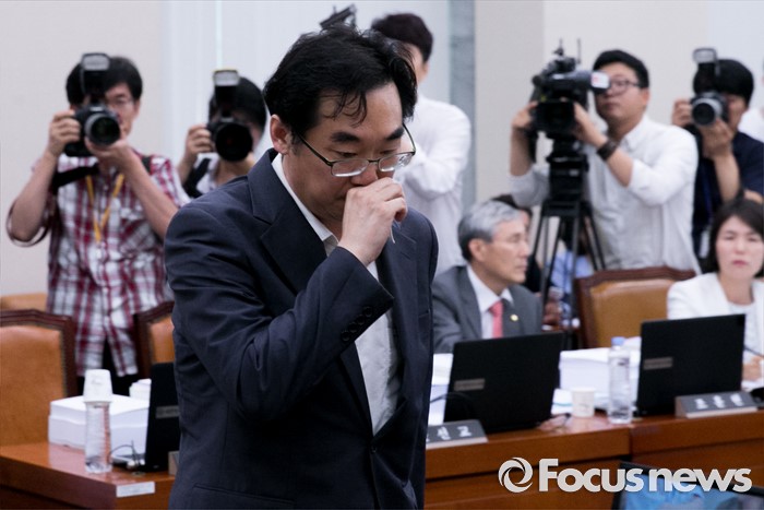 (서울=포커스뉴스) 11일 오후 서울 여의도 국회에서 열린 교육문화체육관광위원회 전체회의에 "민중은 개·돼지"라고 발언해 물의를 빚은 나향욱 교육부 정책기획관이 참석해 의원들의 질의에 답하기 위해 단상으로 향하고 있다.