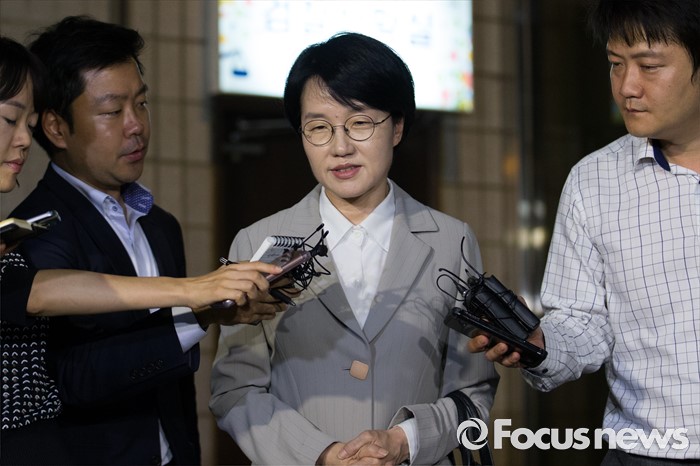 (서울=포커스뉴스) 국민의당 선거 홍보비 리베이트 수수 의혹 사건 관련 사전구속영장이 발부됐던 박선숙 국민의당 의원이 12일 오전 서울 마포구 서부지검에서 구속영장이 기각돼 귀가하며 취재진 질문에 답변하고 있다.