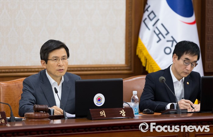 (서울=포커스뉴스) 황교안(왼쪽) 국무총리가 12일 오전 정부서울청사에서 열린 국무회의에서 모두발언을 하고 있다.