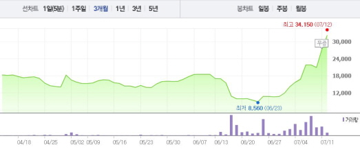 무상증자에 따른 권리락 발생으로 주가가 저렴해 보이는 효과가 반영된 것으로 보인다. 앞서 거래소는 8일 텔콘의 무상증자로 인해 11일 권리락이 발생한다고 공시했다. 8일 종가는 4만1750원이고 권리락에 따른 새 기준가는 2만900원이다.주가흐름<사진출처=네이버 캡쳐>