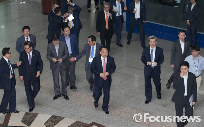 (서울=포커스뉴스) 12일 오전 서울 여의도 국회 헌정기념관에서 열린 글로벌금융학회 정책심포지엄에 유일호 경제부총리 겸 기획재정부 장관 등 참석자들이 행사장으로 향하고 있다.