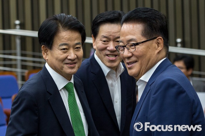 (서울=포커스뉴스) 박지원(오른쪽) 국민의당 비상대책위원장이 12일 오전 서울 여의도 국회에서 열린 의원총회에 참석해 정동영(왼쪽) 의원과 인사한 뒤 자리로 이동하고 있다.