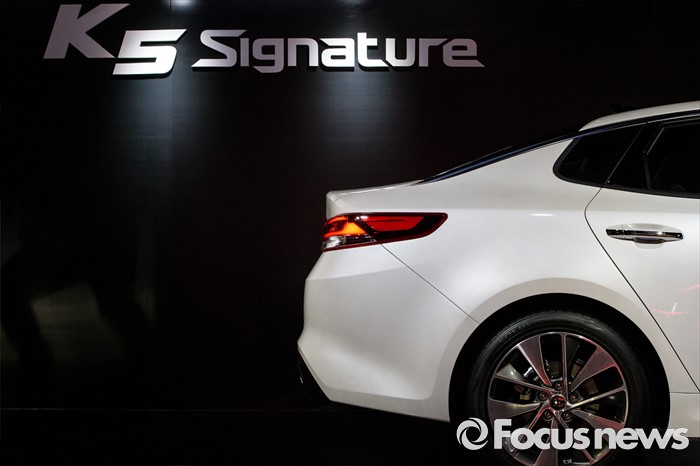 (서울=포커스뉴스) 12일 오전 서울 강남구 인터와이드 스튜디오에서 열린 '2017 K5, K5 PHEV' 출시 사진 및 영상 발표회에 K5 'Signature' 차량이 전시되어 있다.