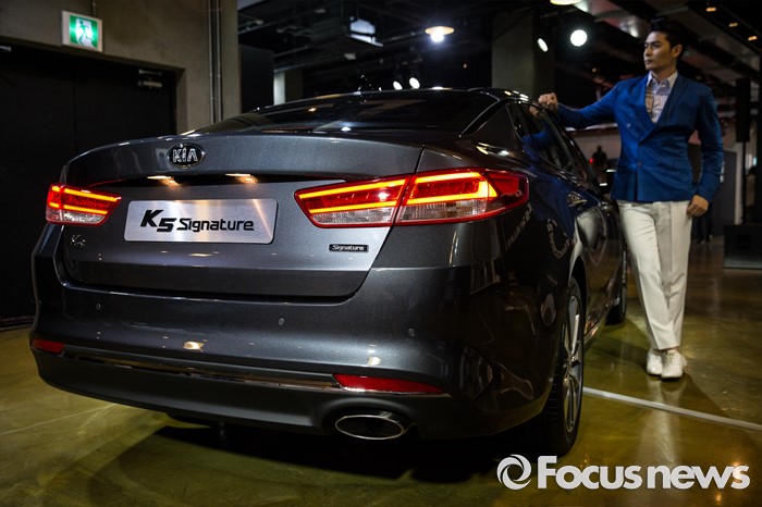 (서울=포커스뉴스) 12일 오전 서울 강남구 인터와이드 스튜디오에서 열린 '2017 K5, K5 PHEV' 출시 사진 및 영상 발표회에 K5 'Signature' 차량이 전시되어 있다.