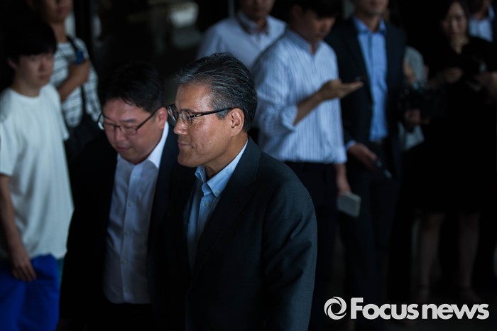 (서울=포커스뉴스) 롯데홈쇼핑 강현구 대표이사가 12일 오전 서울 서초구 서울중앙지검으로 출석하고 있다. 강 대표이사는 롯데홈쇼핑의 사업권을 재승인 받는 과정에서 당시 미래창조과학부 등에 금품을 로비했다는 의혹을 받고 있다.
