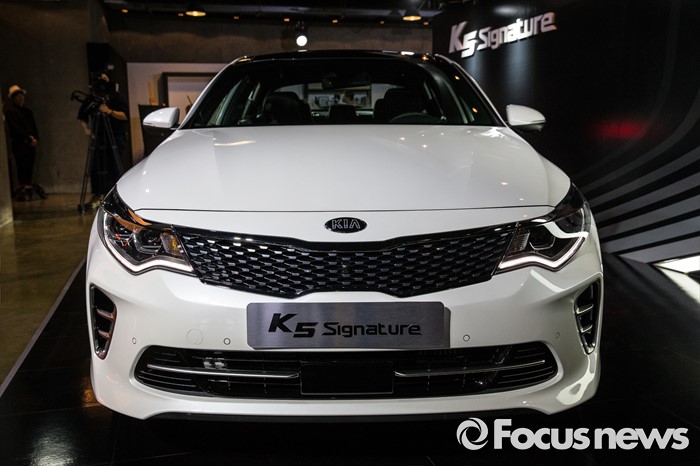 (서울=포커스뉴스) 12일 오전 서울 강남구 인터와이드 스튜디오에서 열린 '2017 K5, K5 PHEV' 출시 사진 및 영상 발표회에 K5 'Signature' 차량이 전시되어 있다.