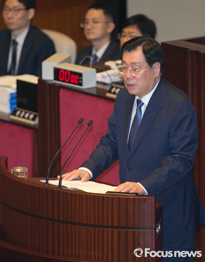 (서울=포커스뉴스) 12일 오전 서울 여의도 국회에서 2015회계연도 결산을 위해 열린 예산결산특별위원회 전체회의에 참석한 황찬현 감사원장이 발언하고 있다.