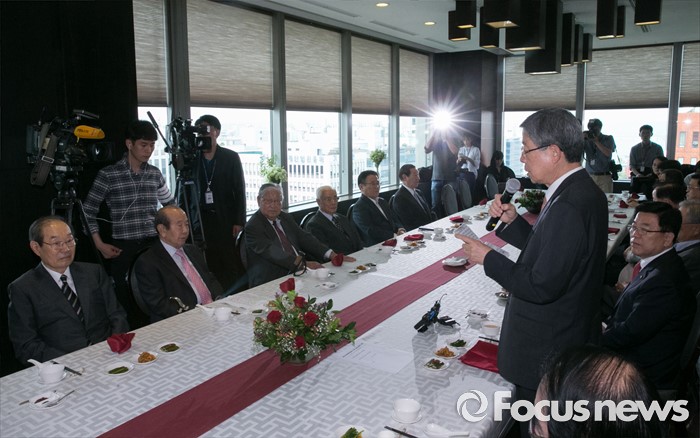 (서울=포커스뉴스) 김희옥 새누리당 혁신비대위원장이 12일 오후 서울 여의도 한 중식당에서 열린 상임고문단 오찬에 참석해 모두발언을 하고 있다.