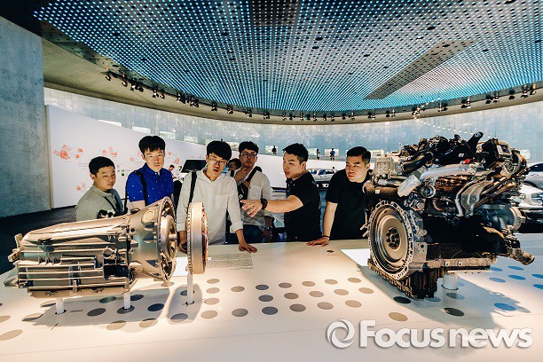 디미트리스 실라키스 벤츠 사회공헌위원회 의장은 “한국 사회를 이끌어 나갈 미래의 주역들에게 ‘교육’의 기회를 넓히고자 지속적인 사회 공헌 활동을 펼쳐 나가고자 노력하고 있다”며 “그 일환으로 모바일 아카데미 등 실질적인 산학협동 프로그램에 참여하는 규모를 늘리고 참여 학생들의 진로 및 취업 기회 제공에도 이바지하고자 한다”고 말했다.모바일 아카데미 참여 학생들이 독일 메르세데스-벤츠 박물관 내에서 파워트레인을 관찰 중이다. <사진제공=메르세데스-벤츠 코리아>