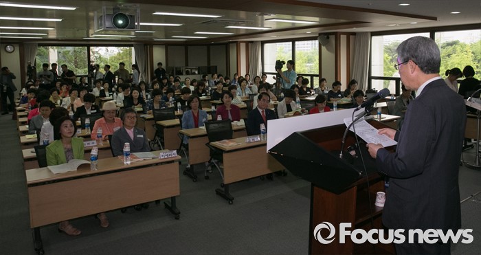 (서울=포커스뉴스) 김희옥 새누리당 혁신비대위원장이 12일 오후 서울 여의도 중소기업중앙회에서 열린 2016 양성평등 포럼에 참석해 축사를 하고 있다.