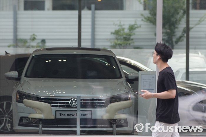 (서울=포커스뉴스) 정부가 지난 2007년 이후 국내 판매된 아우디·폭스바겐 제품 70%에 대해 판매정지 등 행정처분을 준비 중인 것으로 알려진 12일 오후 서울 서초구에 차 전시장이 보이고 있다.
