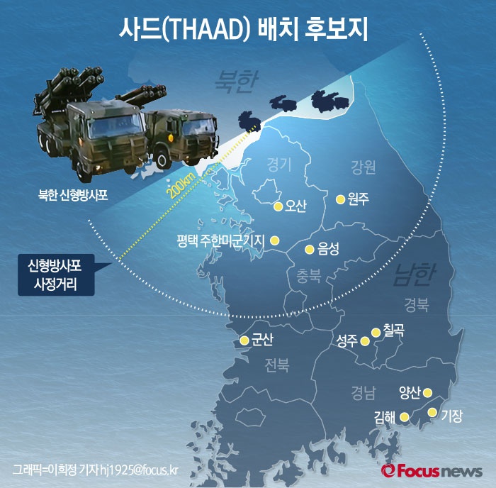 (서울=포커스뉴스) 8일 한미 양국이 주한미군에 사드(THAAD·고고도 미사일방어체계) 미사일 배치를 확정했다고 밝혔다. 사드 배치 부지 결정을 두고 다양한 관측이 쏟아지고 있다.