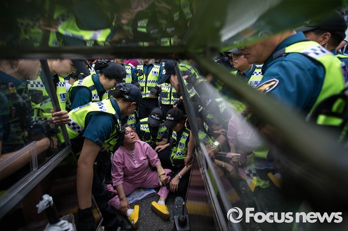 | △ 경찰에 둘러싸인 시민단체 회원 |