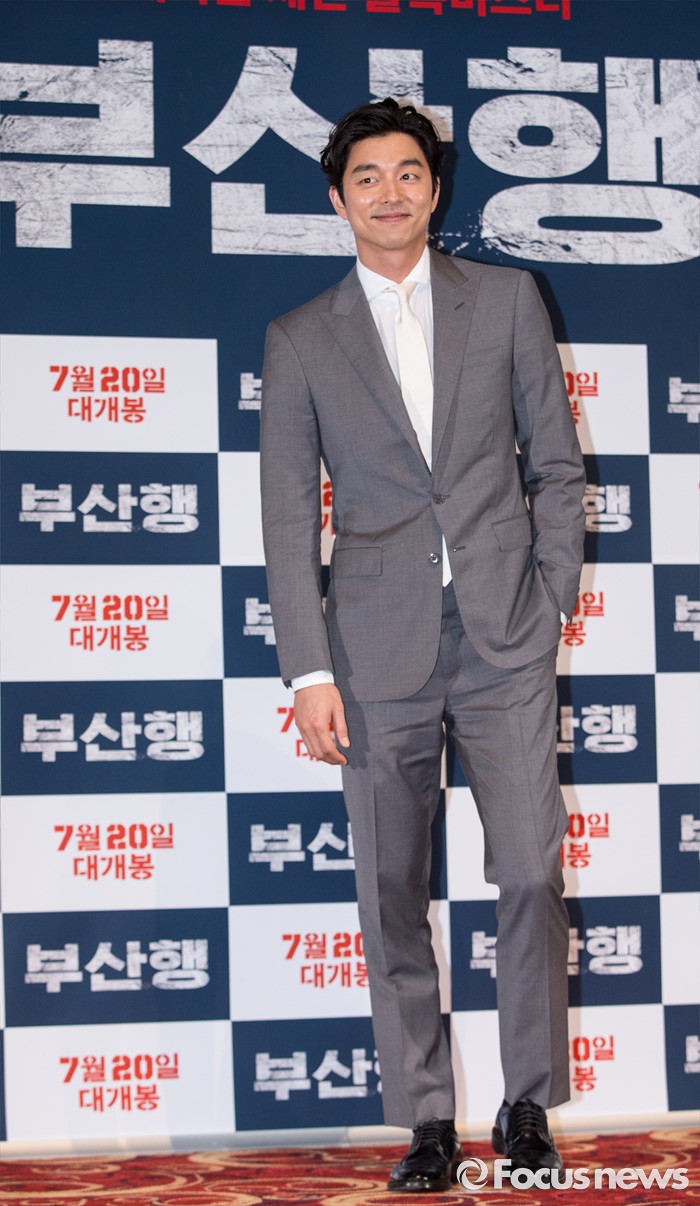(서울=포커스뉴스) 12일 오후 서울 광진구 롯데시네마 건대입구점에서 열린 영화 '부산행' 언론시사회에 참석한 배우 공유가 포토타임을 갖고 있다.