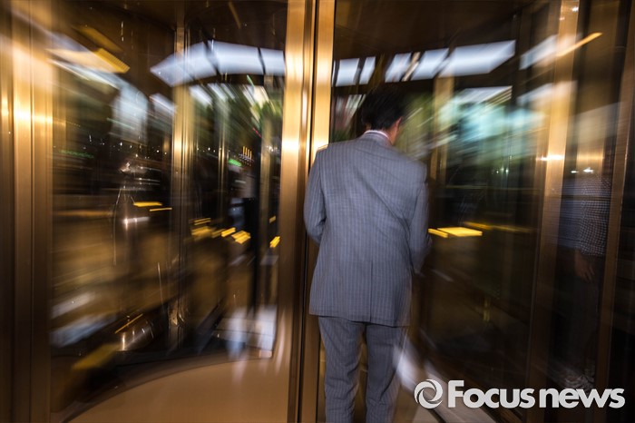 (서울=포컷뉴스) 12일 오후 서울 중구 밀레니엄서울힐튼호텔 앞에서 '일본 자위대 62주년 창설 기념식'을 규탄하는 시민단체들의 시위가 열리고 있는 가운데 한 신원미상의 한 참석자가 행사장으로 들어서고 있다.