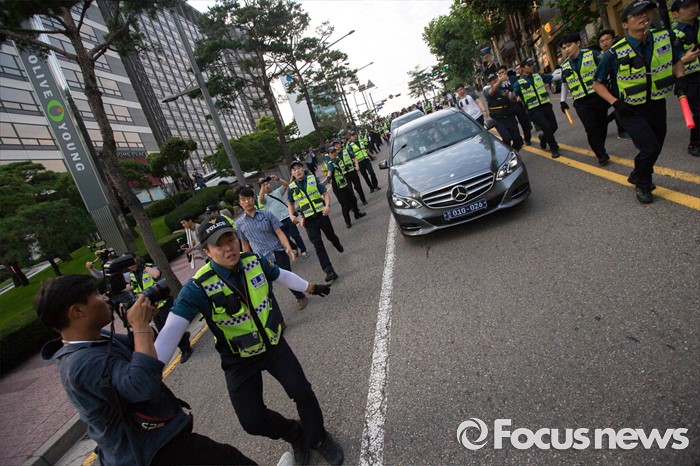 | △ 외교차량, 거센 항의에 줄행랑 |