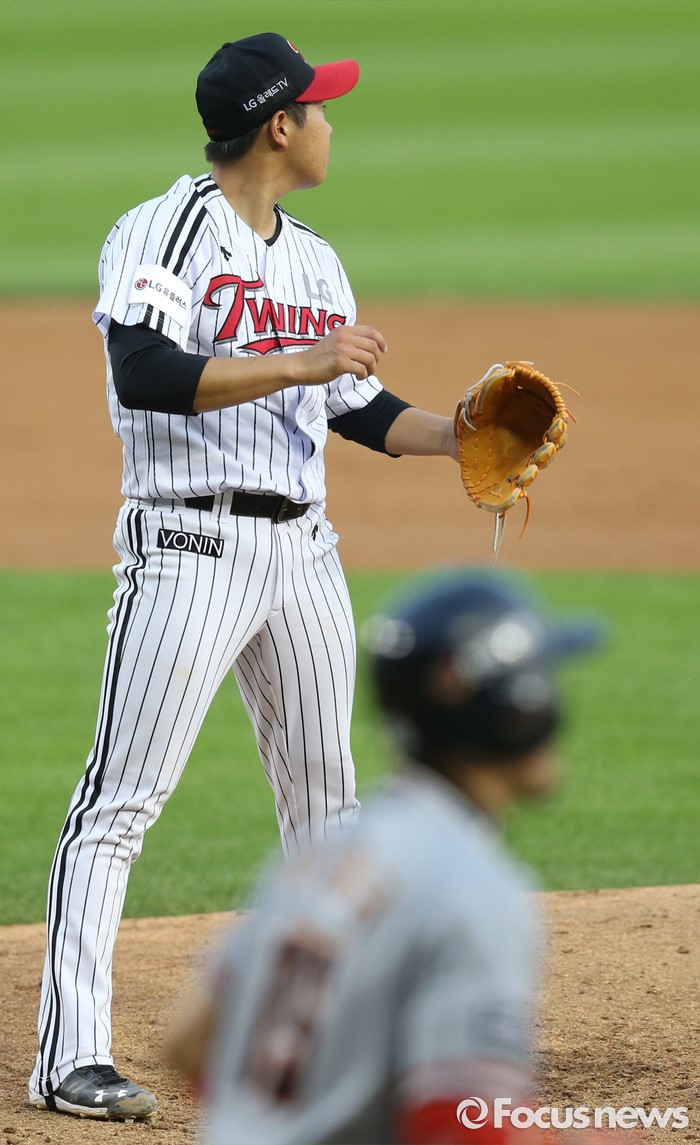 (서울=포커스뉴스) 12일 서울 잠실구장에서 열린 2016 프로야구 한화-LG 경기 3회초 2사 3루에서 LG 투수 유경국이 한화 이용규에게 볼넷을 내주고 아쉬워하고 있다.