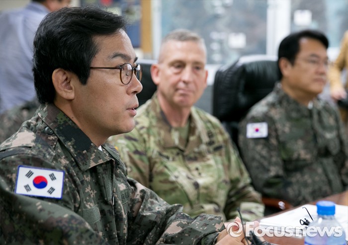 그는 중국을 향해서도 "중국은 보다 침착해져야 한다. (중국은) 오랜 세월 막대한 군비를 쏟아 부어가며 전력을 증강시켜왔다"며 "아마도 자국민을 지키기 위해서였을 것이다. 주한미군 사드배치도 마찬가지"라고 지적했다.새누리당 소속 김영우 국회 국방위원장이 24일 오전 경기도 의정부 미2사단 한미연합사단을 방문해 부대 현황보고에 앞서 인사말을 하고 있다. 2016.06.24 박동욱 기자