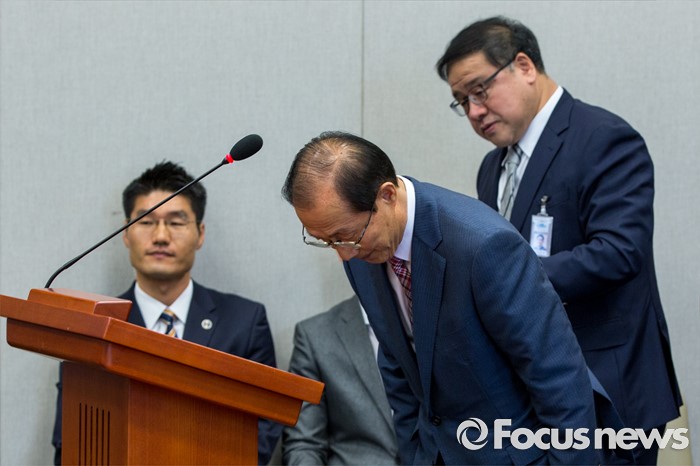 (서울=포커스뉴스) 이원종 대통령비서실 비서실장이 13일 오전 서울 여의도 국회에서 열린 '운영위원회 전체회의'에 참석해 결산심사 관련 보고를 마친 뒤 인사 하고 있다.