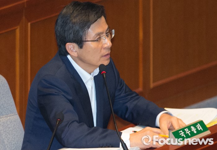 (서울=포커스뉴스) 13일 오전 서울 여의도 국회에서 열린 예산결산특별위원회 전체회의에 참석한 황교안 국무총리가 의원들의 질의에 답하고 있다.