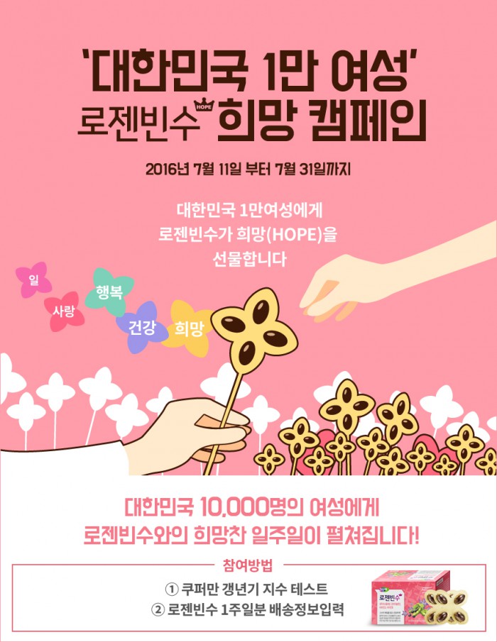참여자 중 총 1만명에게는 소비자가 2만3000원 상당의 '로젠빈수' 1주일 체험분이 주어진다.