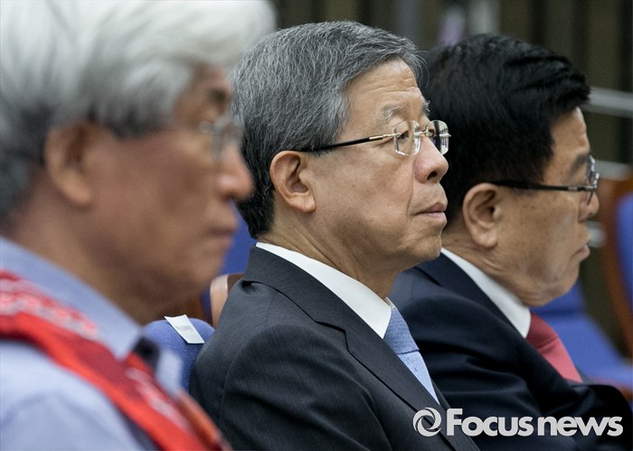 (서울=포커스뉴스) 13일 오후 서울 여의도 국회에서 열린 포용적 시장경제와 새누리당의 진로 토크 콘서트에 참석한 복거일(왼쪽부터) 작가, 김희옥 혁신비대위원장, 김광림 정책위의장이 자리하고 있다.