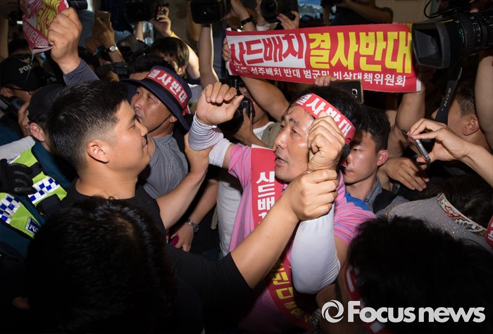 | △ 국방부 상경, 경찰에게 저지 당하는 성주 군민 |