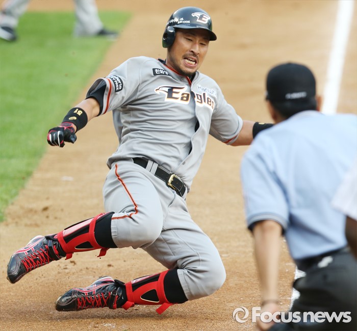 | △ 홈에서 슬라이딩하는 김경언 |