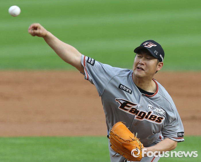 (서울=포커스뉴스) 13일 서울 잠실구장에서 열린 2016 프로야구 한화-LG 경기에서 1회말 한화 선발투수 송은범이 투구하고 있다.