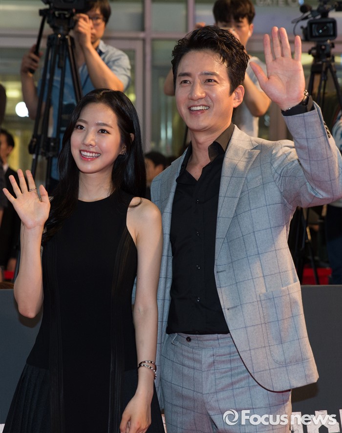 (서울=포커스뉴스) 13일 오후 서울 영등포구 타임스퀘어에서 열린 영화 '인천상륙작전' 레드카펫 행사에 참석한 배우 진세연(왼쪽)과 정준호가 포즈를 취하고 있다.