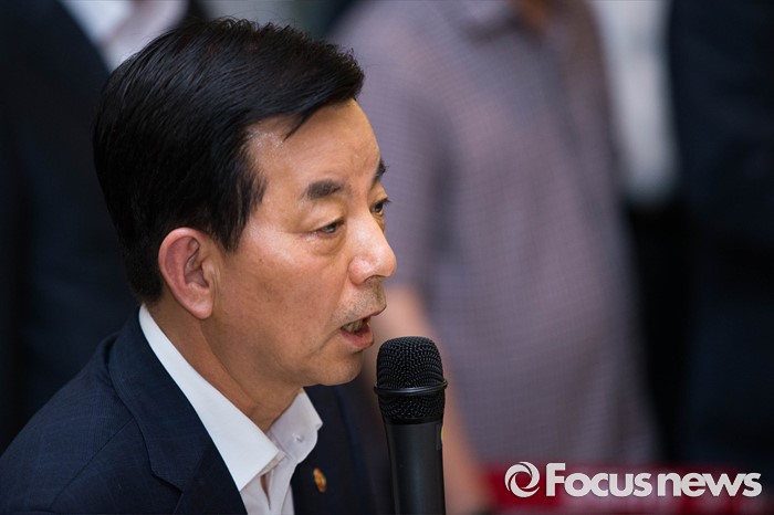 (서울=포커스뉴스) 13일 오후 한민구 국방부 장관이 경북 성주에 사드 배치를 확정한 국방부의 공식 발표 후 서울로 상경, 서울 용산 국방부 컨벤션센터를 항의 방문중인 김항곤 성주군 군수, 사회단체장 및 군민을 찾아 대화를 나누고 있다.