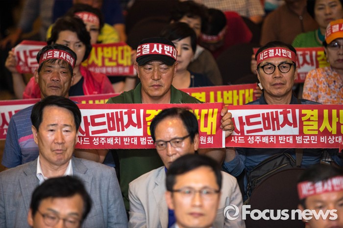 (서울=포커스뉴스) 한민구 국방부 장관이 13일 오후 서울 용산구 국방컨벤션센터에서 사드 배치에 항의 방문 중인 김항곤 성주군수 등 사회단체장 및 군민들에게 사과 발언을 하고 있다. 국방부는 이날 경북 성주군을 고고도 미사일 방어(사드·THAAD)체계 배치 지역이라고 공식 발표했다.