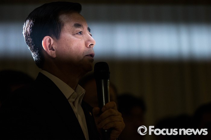 (서울=포커스뉴스) 한민구 국방부 장관이 13일 오후 서울 용산구 국방컨벤션센터에서 사드 배치에 항의 방문 중인 김항곤 성주군수 등 사회단체장 및 군민들에게 사과 발언을 하고 있다. 국방부는 이날 경북 성주군을 고고도 미사일 방어(사드·THAAD)체계 배치 지역이라고 공식 발표했다.