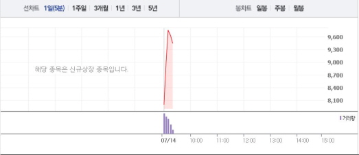대유위니아는 14일 오전 9시20분 현재 시초가 대비 17.72%(1400원) 상승한 9300원에 거래되고 있다. 시초가는 공모가(6800원)보다 16.18% 오른 7900원이다.