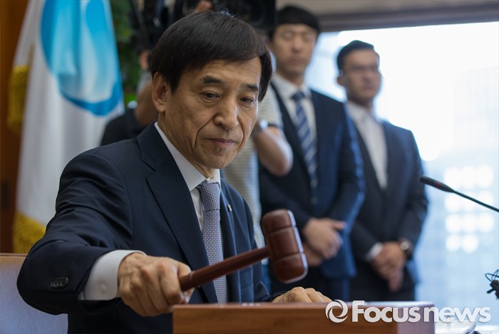 (서울=포커스뉴스) 14일 오전 서울 중구 한국은행에서 열린 제14차 금융통화위원회의에 참석한 이주열 한국은행 총재가 개회를 알리는 의사봉을 두드리고 있다.