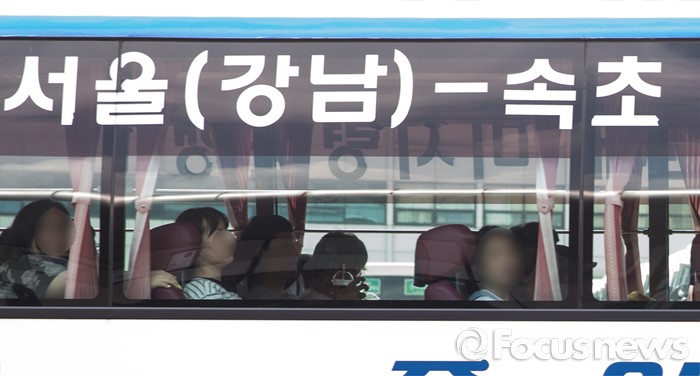 (서울=포커스뉴스) 14일 오전 서울 서초구 고속버스터미널에서 강원도 속초를 향하는 버스가 출발하고 있다.