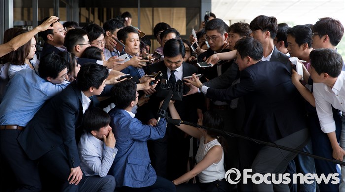 (서울=포커스뉴스) '주식 대박' 논란에 휩싸인 진경준 검사장이 14일 오전 서울 서초구 서울중앙지방검찰청으로 출석하고 있다.
